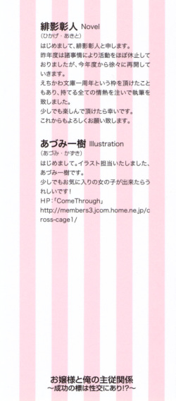 [緋影彰人、あづみ一樹] お嬢様と俺の主従関係 ~成功の標は性交にあり!?~