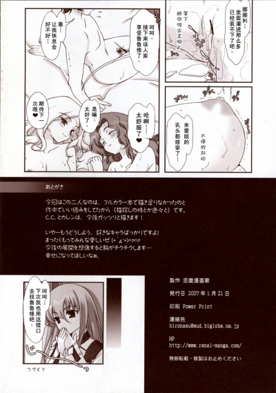 (SC34) [Renai Mangaka (Naruse Hirofumi)] Code XXX (CODE GEASS: Lelouch of the Rebellion) [Chinese] [工口骑士团]