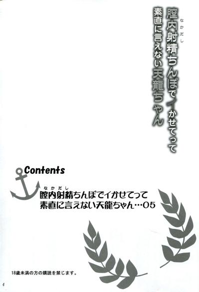 (C85) [Ashitakara-Ganbaru (Yameta Takashi)] Nakadashi Chinpo de Ikasete tte Sunao ni Ienai Tenryuu-chan (Kantai Collection)