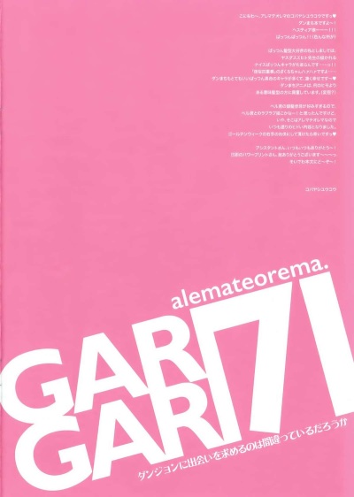 (COMIC1☆9) [Alemateorema (Kobayashi Youkoh)] GARIGARI 71 (Dungeon ni Deai o Motomeru no wa Machigatteiru Darou ka)