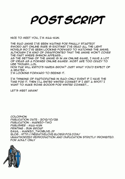 (C83) [Marked-two (Maa-kun)] Sword Art Online Darkness:2.0 ~Sore Ike! Saizensen-kun~ (Sword Art Online) [English] [Tigoris Translates]