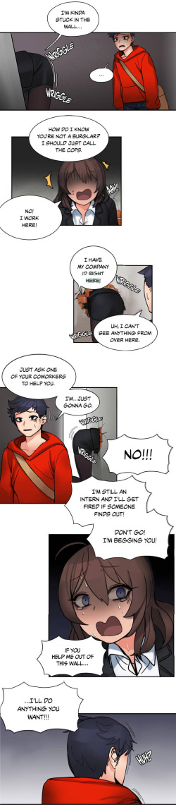 [개호주、건어물] 벽에 끼인 여자 [英語]