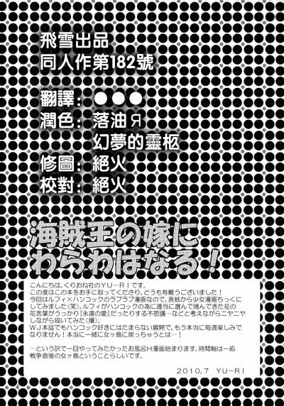 (C78) [くりおね社 (YU-RI)] 海賊王の嫁にわらわはなる! (ワンピース) [中国翻訳]