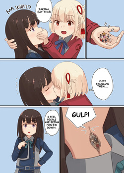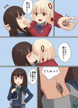 [あんしんママ] リコリスの2人がちんちんシェアする漫画2p (リコリス・リコイル)