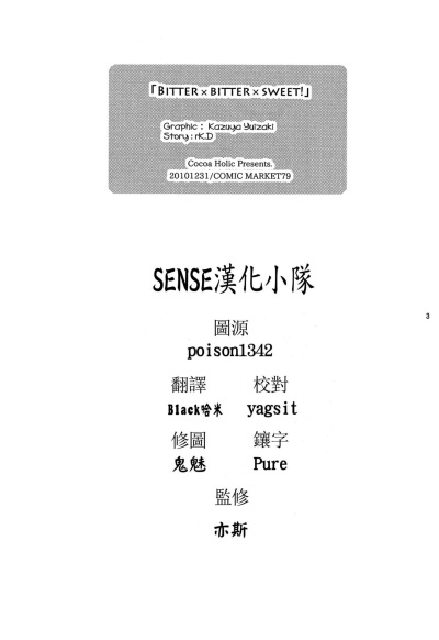 (C79) [ココアホリック (ユイザキカズヤ)] BITTER x BITTER x SWEET! (とある魔術の禁書目録) [中国翻訳]